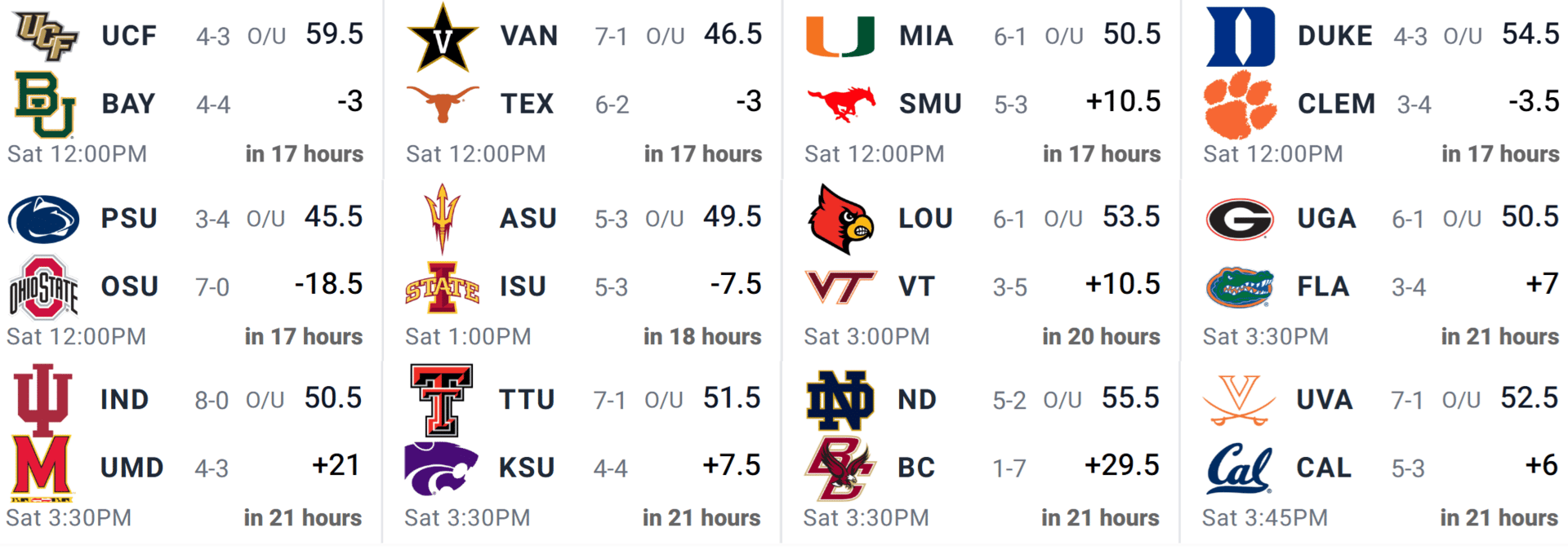 Week 10 Saturday College Football Core Plays & Cheat Sheet