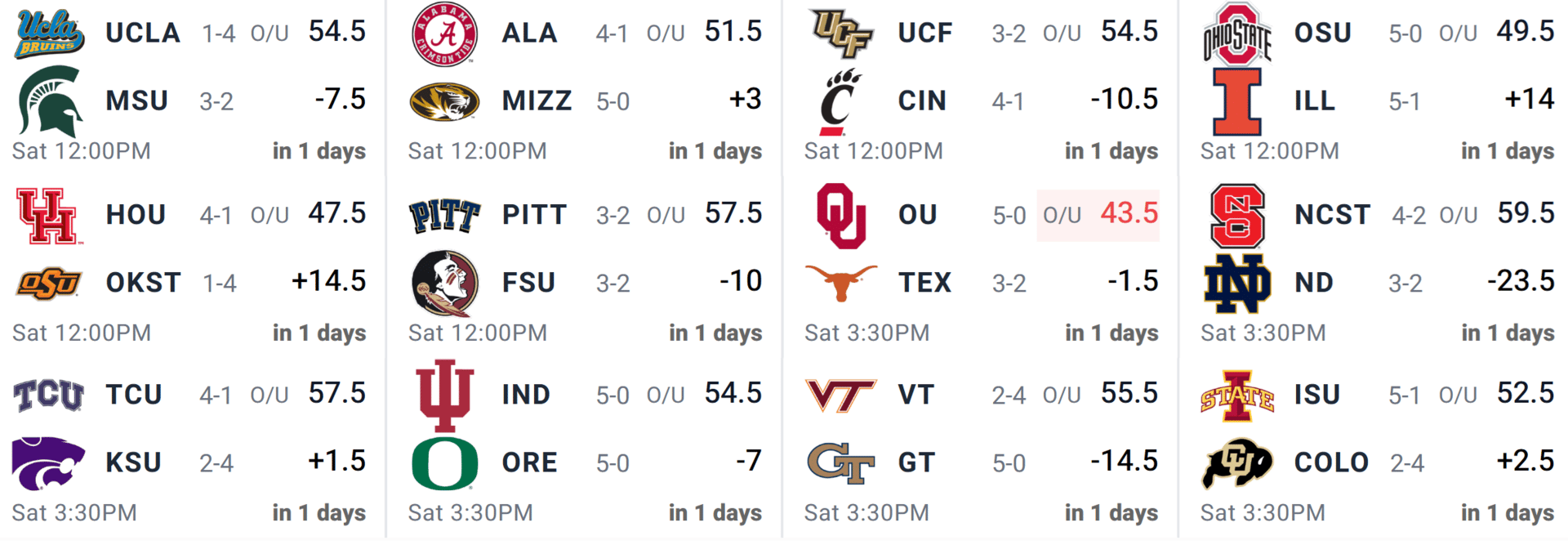 Week Seven Saturday College Football Core Plays & Cheat Sheet