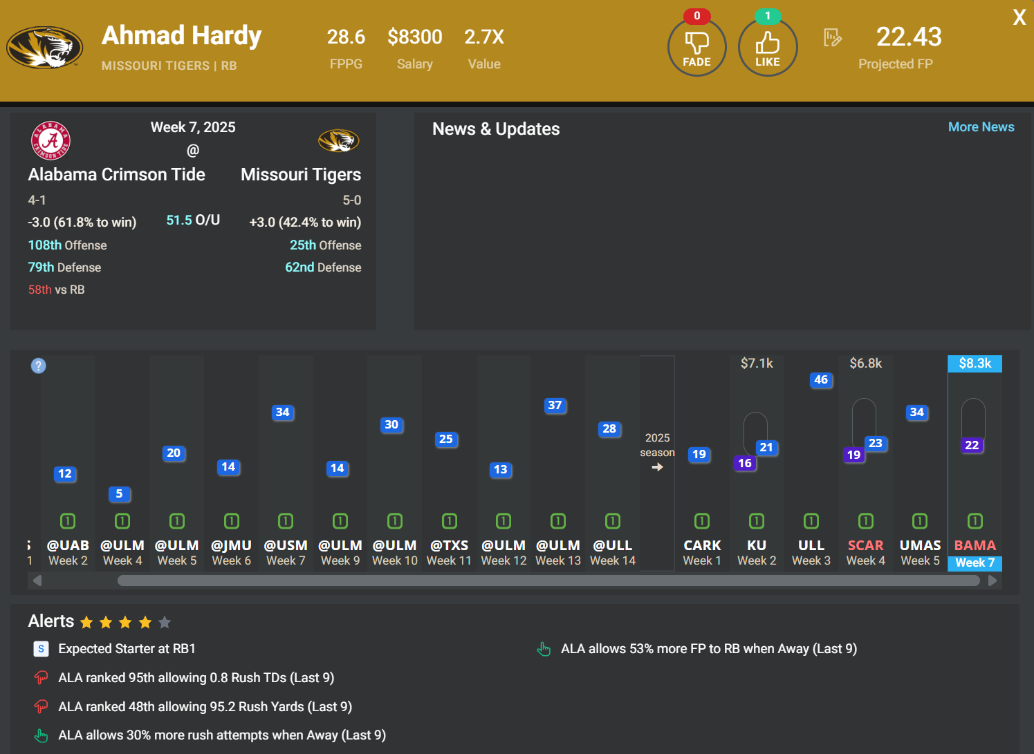 RB Ahmad Hardy, Missouri | $8,300 | vs. BAMA